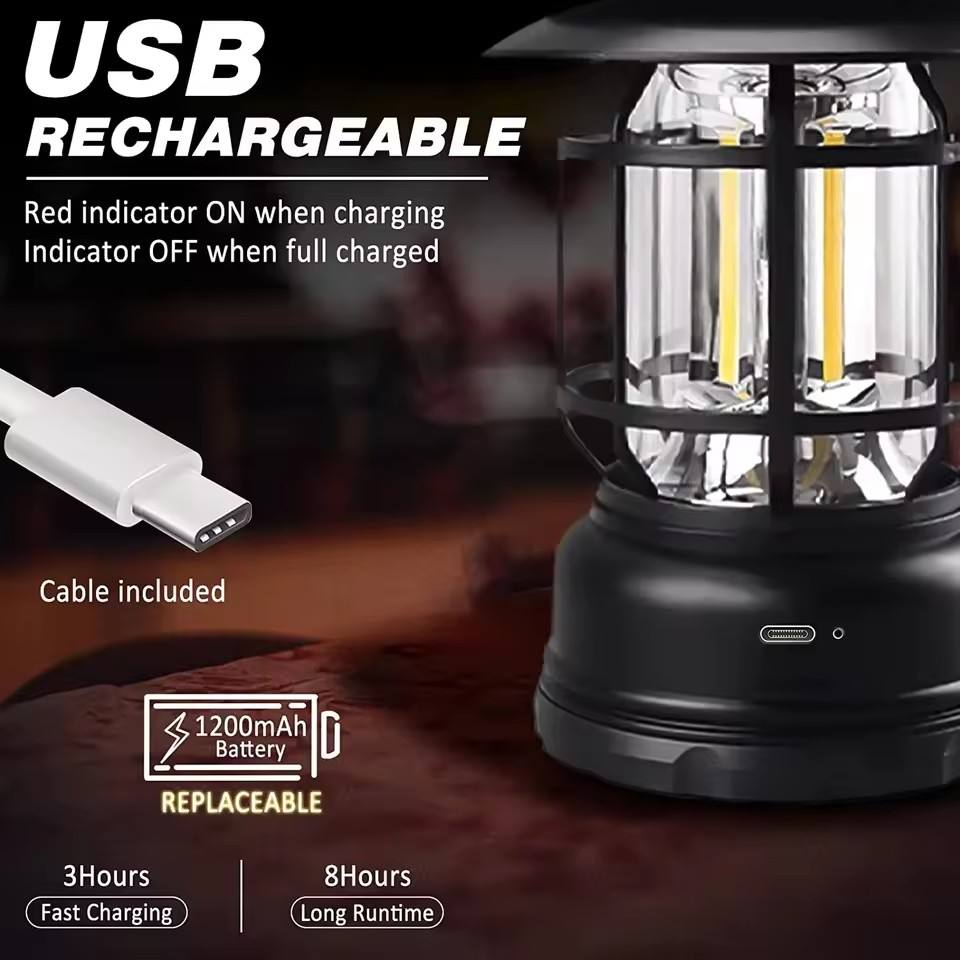 মাল্টিফাংশনাল রিচার্জেবল স্টেপলেস ডিমিং হ্যান্ডহেল্ড এলইডি ক্যাম্পিং ল্যাম্প ভিনটেজ পোর্টেবল লণ্ঠন পণ্যের বিবরণ :